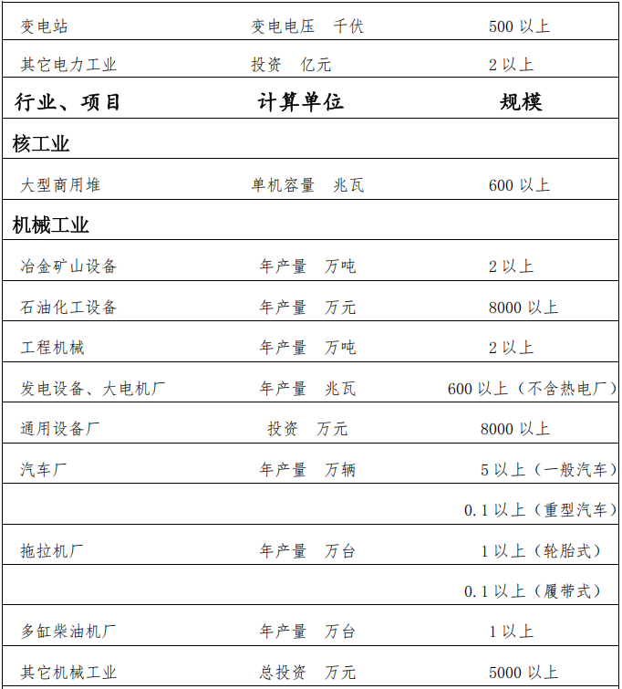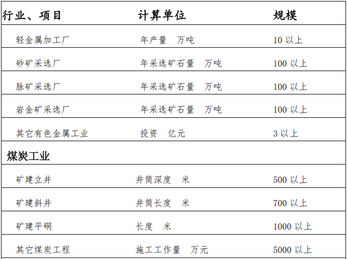 中国建筑业协会中国建设工程鲁班奖 (国家优质工程)工程类别划分 一、住宅工程 住宅工程包括住宅小区、公寓、单体住宅、群体住宅和以住宅为主的综合楼等工程。 二、公共建筑工程 公共建筑工程包括教育科研、商业服务、医疗福利、文化娱乐、旅游服务、体育、邮电、客运、办公、会展、广场及纪念性等工程。 三、工业交通水利工程 工业工程包括钢铁、有色金属、煤炭、石油、石化、化工、电力、机械、建材、核工业、机电、轻纺等工程。 交通工程包括公路和铁路的线路、桥梁、隧道,铁路编组站,港口、航道、通航建筑物、修造船水工建筑物及其他水运工程,机场场道、货运站等工程。 水利工程包括水坝、水闸、引水、灌溉及排水泵站、堤防等工程。 四、市政园林工程 市政园林工程包括城市道路、桥梁、公共交通设施、供气、供暖、给水、排水、水处理、公园、动物园、植物园等工程。 附件2: 中国建筑业协会中国建设工程鲁班奖 (国家优质工程)申报工程规模要求 一、住宅工程 (一)建筑面积50000平方米以上的住宅小区或住宅小区组团; (二)非住宅小区内的建筑面积为30000平方米以上的单体高层住宅。 二、公共建筑工程 (一)30000座以上的体育场; (二)5000座以上的体育馆; (三)3000座以上的游泳馆; (四)1500座以上的影剧院; (五)高度350米以上的电视发射塔或投资2亿元以上的其他构筑物工程; (六)建筑面积3000平方米以上的单体或20000平方米以上的群体古建筑重建工程; (七)建筑面积60000平方米以上的学校、医院、科研等单位的群体建筑工程; (八)上述(一)至(六)项未列入的,建筑面积30000平方米以上的其他单体公共建筑工程。 (九)总投资在20亿元以上,由上述(一)至(六)、(八)项规定的单体工程组成,各单体工程均属同一立项、相邻、使用功能相互配套或有关联的群体建筑工程。 三、工业交通水利工程 (一)工业工程 ![]() ![]() ![]() ![]() ![]() ![]() ![]() ![]() ![]() ![]() ![]() (二)交通工程 1、铁路工程 (1)长度50公里以上的单线或30公里以上的双线(多线)新建铁路综合工程; (2)连续长度80公里以上的扩建铁路(含增建二线)综合工程; (3)大型编组站、集装箱中心站、动车段综合工程; (4)长度1500米以上的铁路特大桥或采用新技术、新材料、新工艺,结构复杂,科技含量高的铁路大桥; (5)长度3000米以上的单线铁路隧道、2000米以上的双线铁路隧道或1000米以上的多线铁路隧道; (6)长度100公里以上的铁路电气化、通信信号、列控工程; (7)投资5000万元以上,采用新技术、新工艺,具有示范性,经济、社会效益显著的其它铁路工程。 2、公路工程 (1)全长3000米以上或单跨300米以上的独立特大桥或独立大型互通立交桥; (2)长度2000米以上的公路隧道; (3)长度50公里以上的高速公路; (4)长度200公里以上的一级公路; (5)投资5000万元以上的大型立交及其它大型交通工程。 3、水运工程 (1)年吞吐量100万吨以上杂货、300万吨以上散货或30万标箱以上集装箱的沿海港口; (2)年吞吐量60万吨以上杂货、100万吨以上散货或10万标箱以上集装箱的内河港口; (3)沿海通航10000吨级以上船舶或内河通航300吨级以上船舶的航道; (4)通航300吨级以上船舶的渠化枢纽或船闸; (5)投资1亿元以上的修造船厂及其它水运工程。 4、民航工程 机场飞行区等级4D以上的工程。 (三)水利工程 1、库容1亿立方米以上的水库工程; 2、过闸流量1000立方米/秒以上的拦河闸; 3、装机流量50立方米/秒以上或装机功率10兆瓦以上的灌溉或排水泵站; 4、高度70米以上土石、100米以上混凝土或浆砌石的水工大坝; 5、重现期50年以上的一级或二级堤防工程; 6、投资1亿元以上的其它水利工程。 四、市政园林工程 (一)桥面面积3万平方米以上的城市立交桥或20万平方米以上的城市道路工程; (二)全长400米以上或单跨80米以上的桥梁工程; (三)长度800米以上的城市跨河桥; (四)长度5公里以上的轨道交通工程; (五)日供水10万吨以上的供水厂或日处理10万吨以上的污水处理厂; (六)日处理1200吨及以上的生活垃圾卫生填埋处理工程; (七)日处理1200吨及以上的生活垃圾焚烧处理工程; (八)占地5万平方米以上且建筑面积1万平方米以上的园林建筑工程; (九)投资1亿元以上的其它市政园林工程。 ![]()